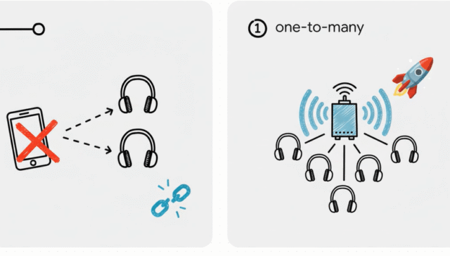 Wij bieden de allerbeste oplossing om heel eenvoudig meerdere Draadloze Hifi Bluetooth Koptelefoons en Headmounted Microfoons tegelijk te gebruiken.