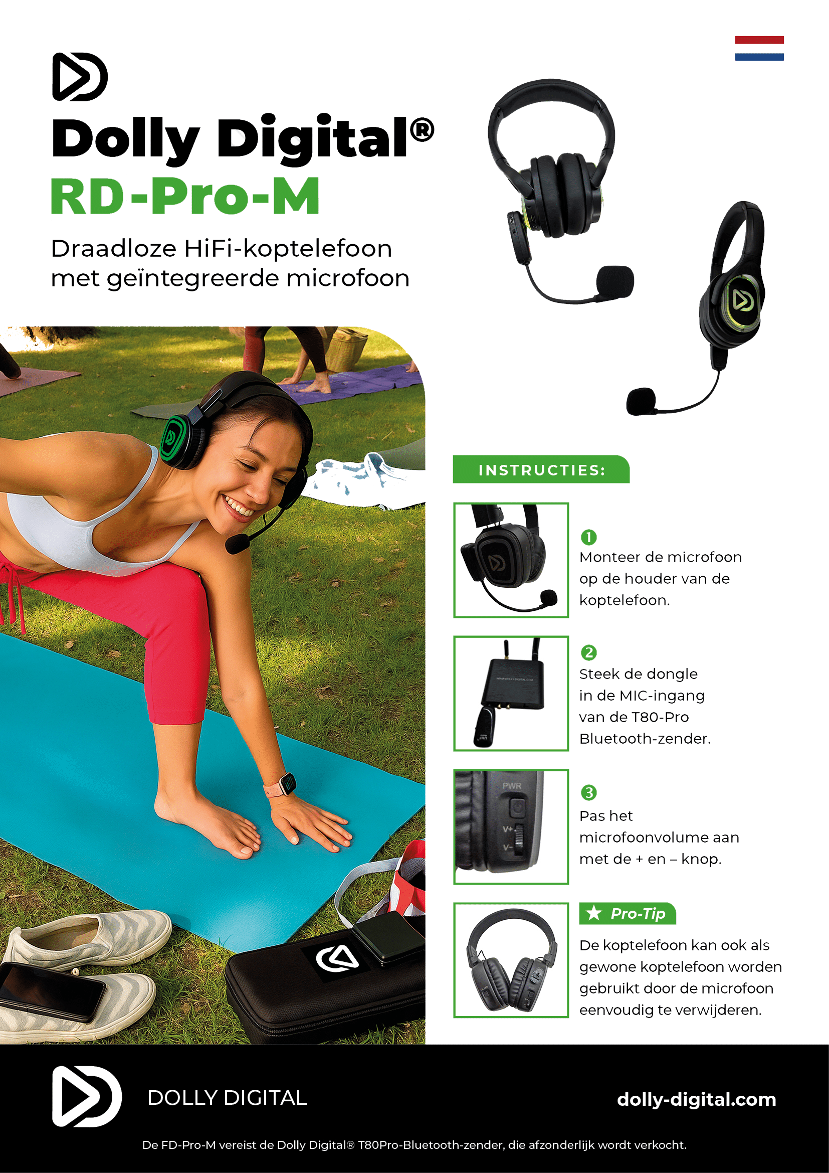 - Inclusief RD-Pro-M: een draadloze headmounted microfoon met 2.4GHz UHF dongle